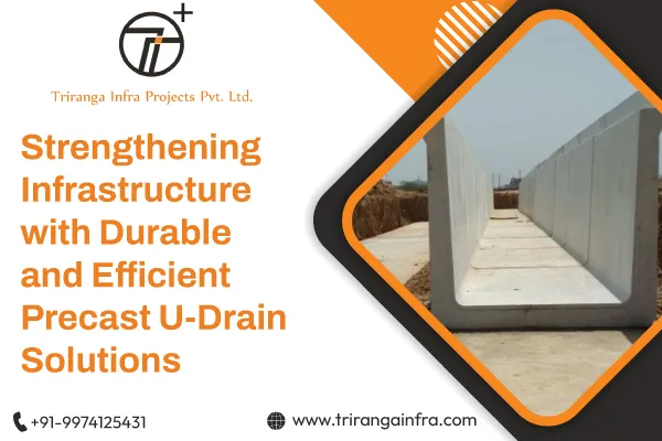 Strengthen your infrastructure with durable Precast U-Drain solutions. Call +91 9974125431 or email info@trirangainfra.com for expert guidance today!